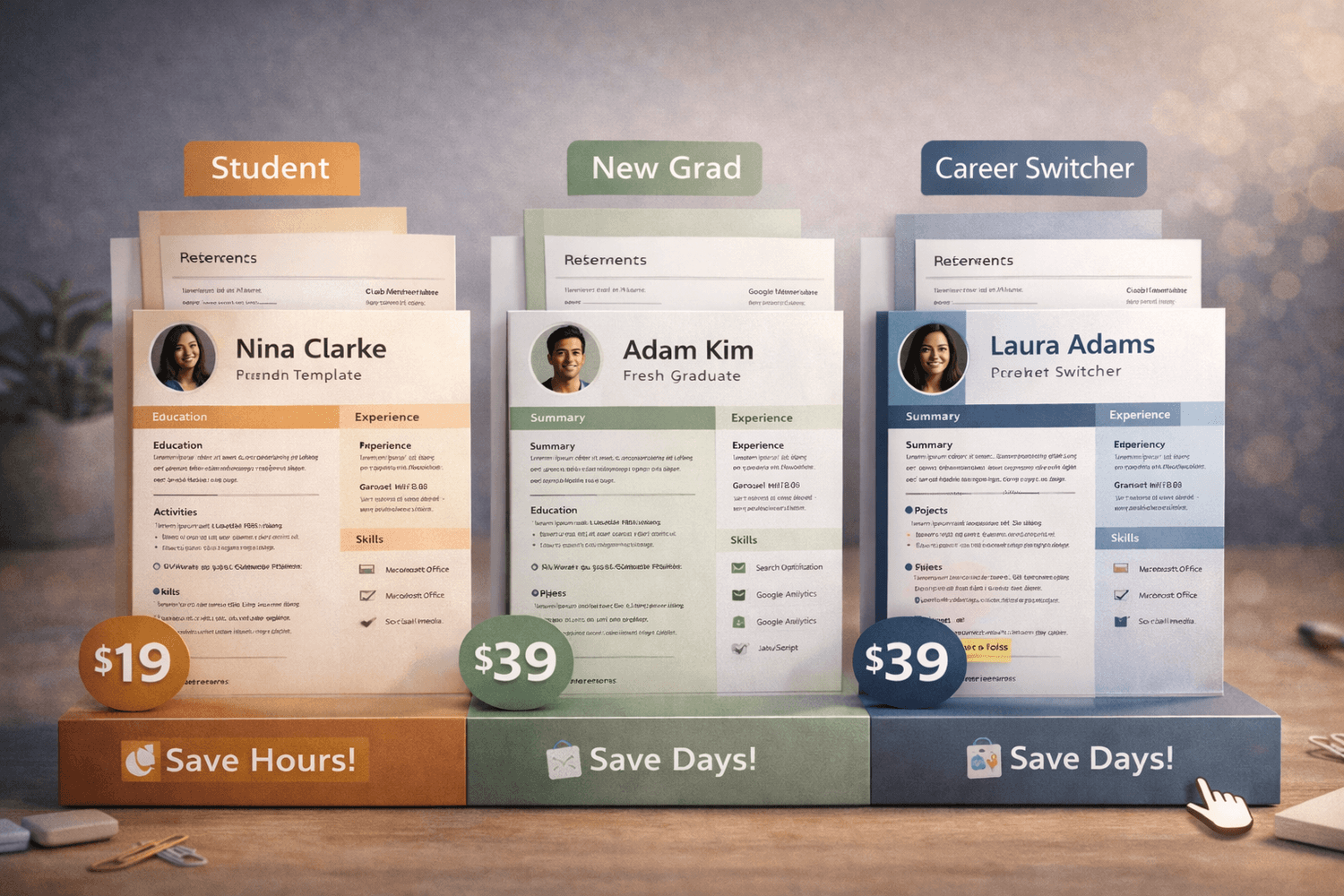 These appeal to students, job seekers and professionals who want a polished look without design skills.